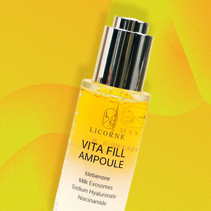 Serummet er ideelt til særlige begivenheder, hvor du ønsker, at huden skal se ekstra frisk og ungdommelig ud. Den intensive formel leverer synlige resultater hurtigt og kan anvendes regelmæssigt som en del af din hudplejerutine for en langvarig opstrammende effekt. Med en høj koncentration af idebenone og en blanding af antioxidant planteekstrakter som rosmarin, kamelia, morgenfrue og lavendel samt frugtekstrakter fra figen, granatæble og morbær, tilfører Licorne Vitafill Ampoule fugt til dybe hudlag, forbedrer olieabsorptionen og organiserer hudens tekstur.