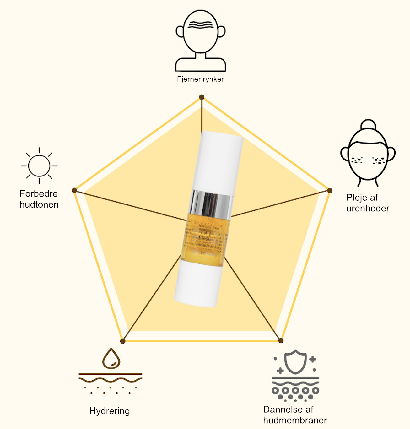 Serummet indeholder mælkeenzymer, der styrker kollagenproduktionen og forbedrer hudens tæthed og elasticitet. Kulsyreholdigt vand fungerer effektivt som et udgangspunkt for at rense huden, fjerne døde hudceller og overskydende talg, hvilket resulterer i en klarere hudtone og reducerer årsagerne til sløvhed.